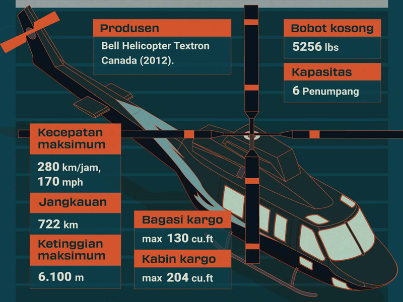 Helikopter Bell 429 merupakan pesawat buatan Canada tahun 2012 dapat mengudara sejauh 276 Miles dan memiliki tiga konfigurasi tempat duduk serta bisa diatur untuk empat penumpang. Helikopter ini memiliki ruang bagasi yang dua kali lebih besar dibandingkan kebanyakan helikopter ringan bermesin ganda.